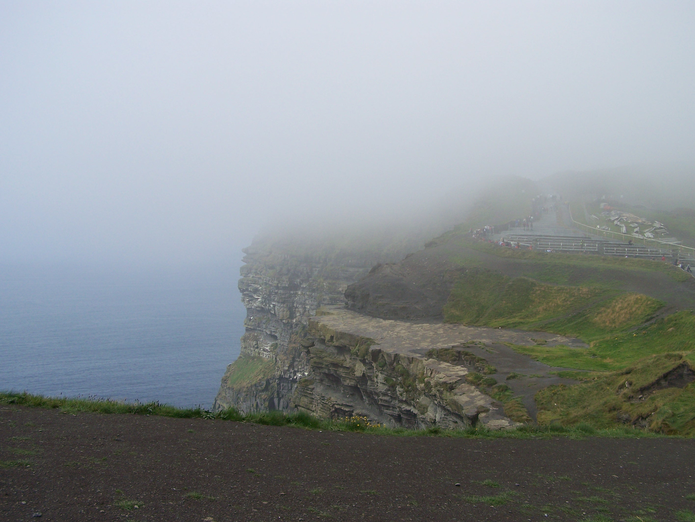 When we arrived at the Cliffs of Mohr it was badly fogged in and at first we thought that O’Brien’s Tower was gone because we couldn’t see it. There was a lot of construction going on for a new Visitor Center that will be mostly underground to preserve the flow of the landscape. A new walk way had been opened to the west – which is where most of the traditional pictures of the Cliffs of Mohr are taken from anyway.