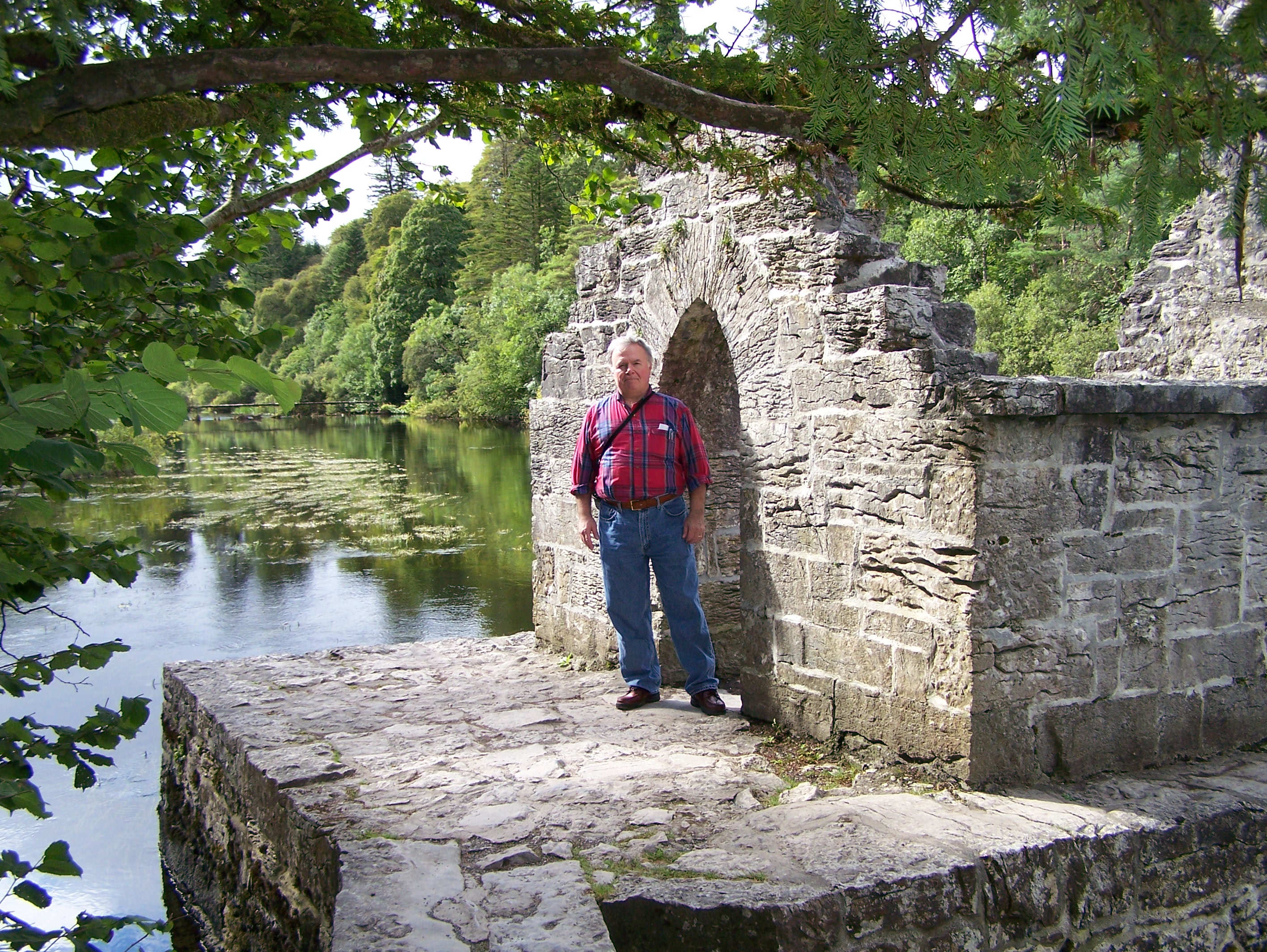 Since Ballykine Castle was badly overgrown we decided not the check it out but instead drove into Cong where the ruins were much more accessible. We parked in the car park across from the modern and very ugly looking Catholic Church. It looked more like a VFW Hall than a church. This was at 10:00 AM and we originally thought we could get back in time to beat the folks coming in for the 11:30 service – WRONG. They parked like sardines – in the aisles – in the streets – everywhere – nothing was going to move until Mass was over.