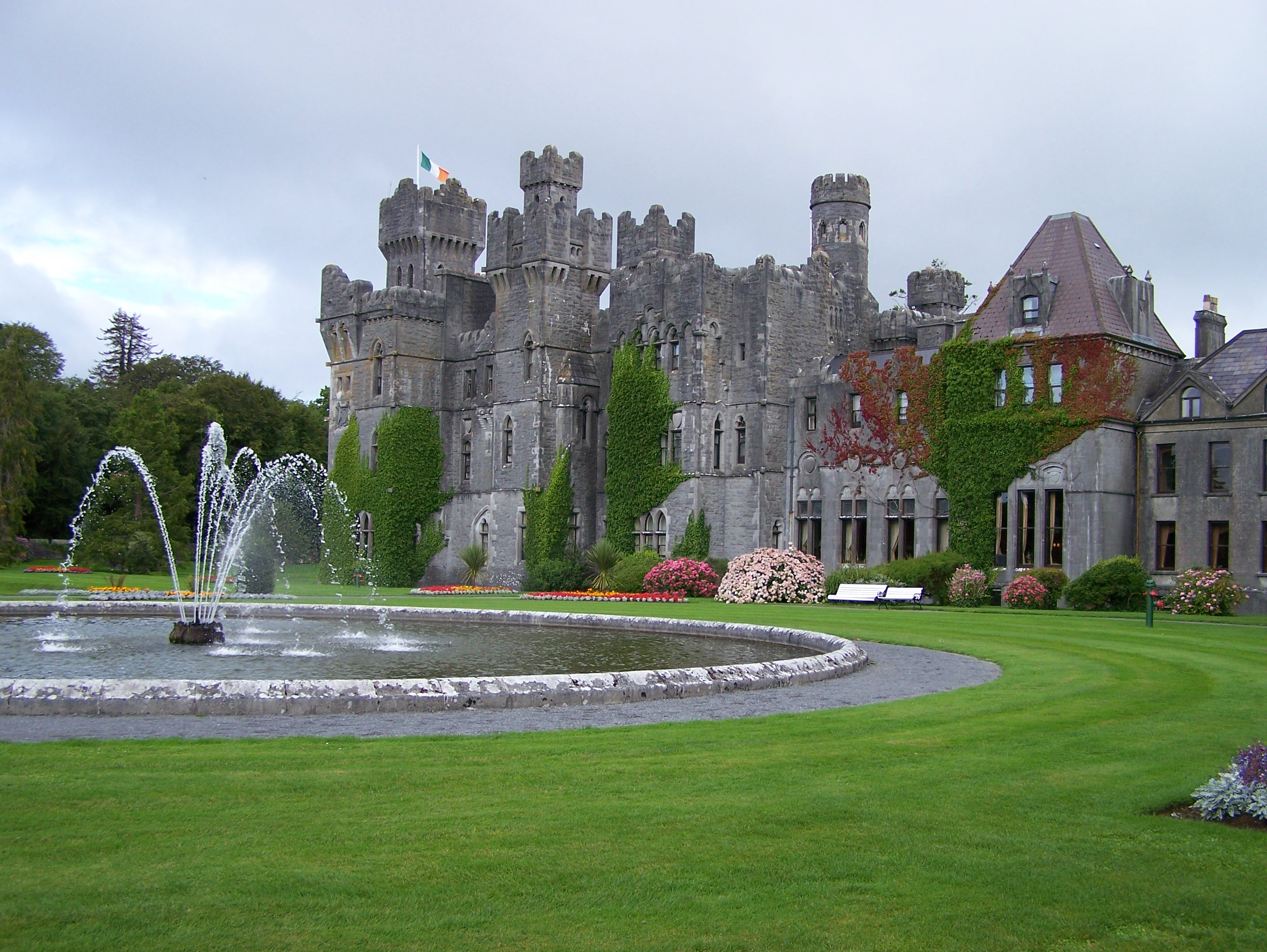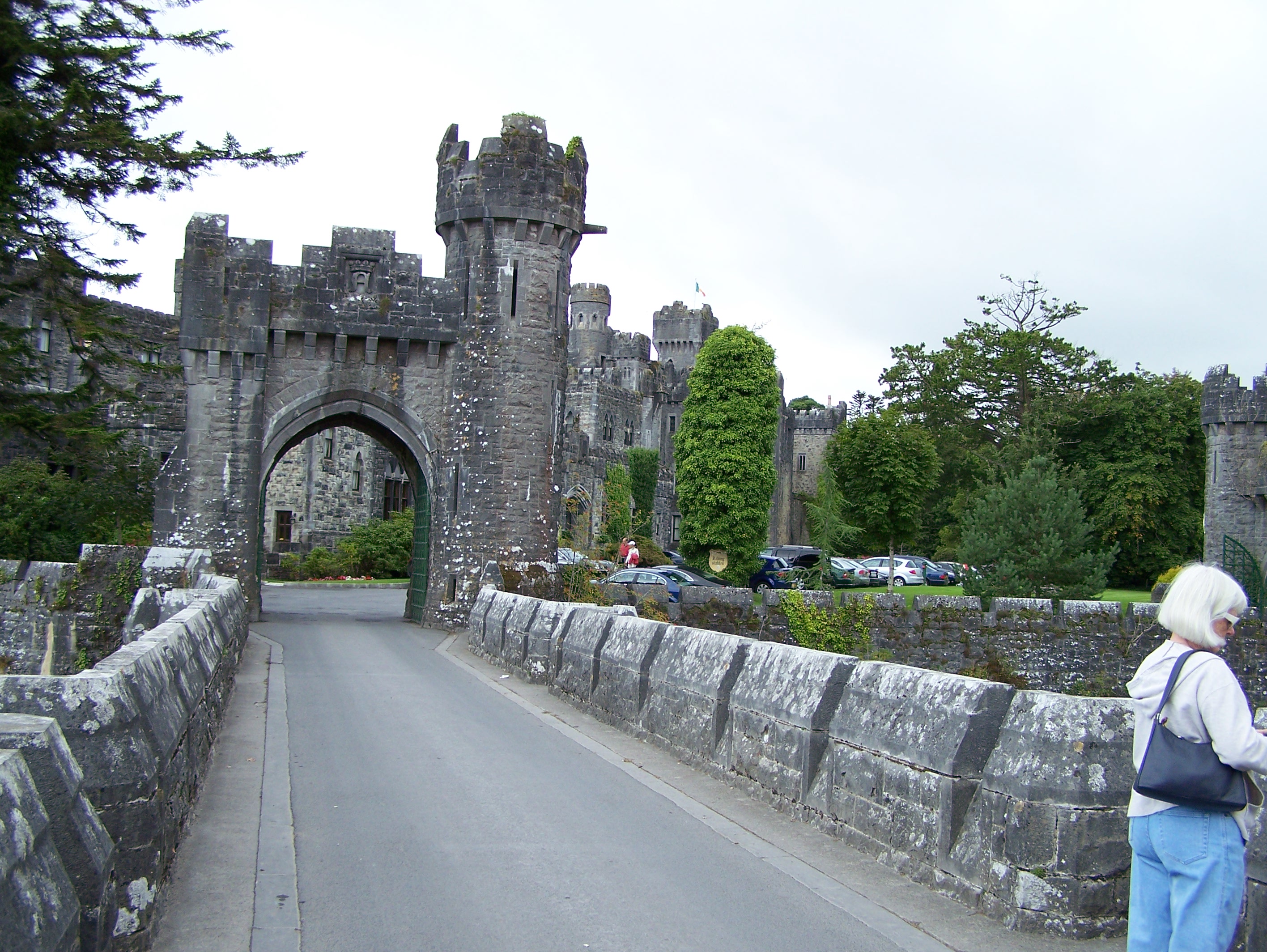 Ashford Castle was beautiful. We walked around the grounds and took many very good pictures. While we were there a tour bus was trying to squeeze through the very narrow gates at the castle end of the bridge. It took him awhile to maneuver the bus through the first gate but he made it through without a scratch.