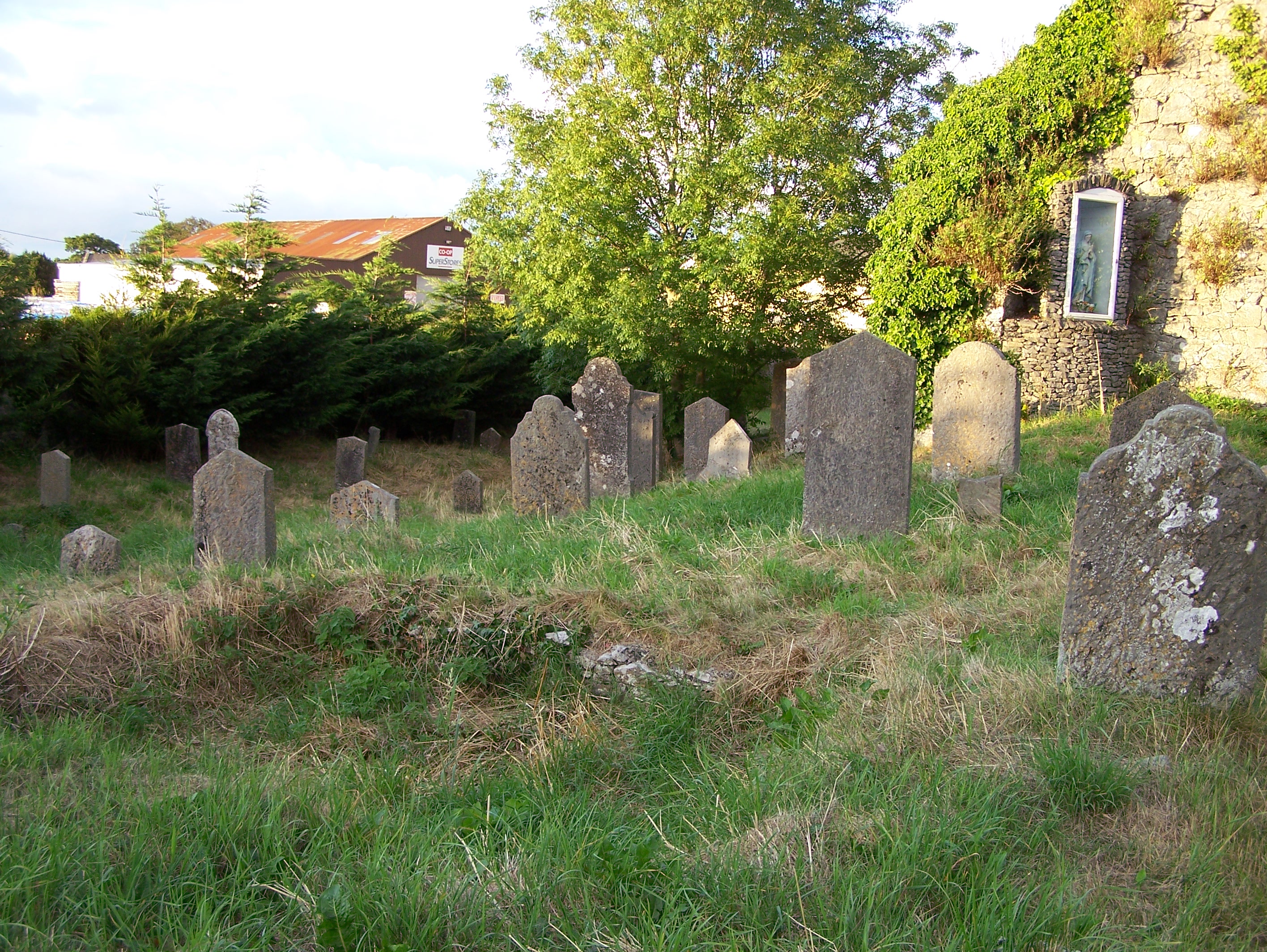 Our time in Thurles was up so we headed southwest toward Cahir and were looking for a couple more graveyards on the way. We took the road via Holycross to go through Clogher in Clonoulty parish. We went through Clogher twice but we still couldn’t see any trace of a cemetery or either of the two castles that were on the Discovery map in the town of Clogher. Clogher had been a long shot anyway so we moved onto Tipperary town that was filled with traffic. After leaving Tipperary we approached Cahir from the north and went to the car park next to Cahir Castle.