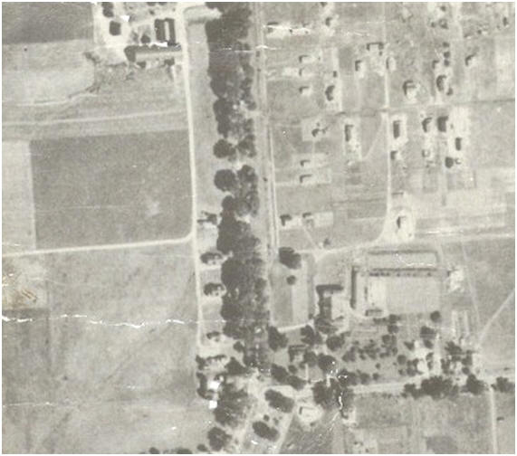 Up at the top of the picture is part of the Kirsch compound. The long barn, extending east and west is probably the fairly new barn that burned in August 1927. |