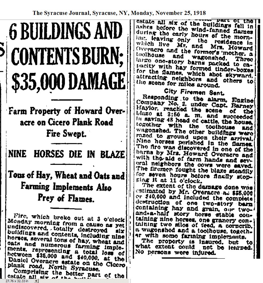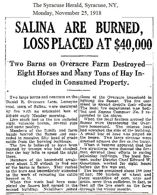 NOTES: [1918-11-25a] - "6 Buildings and Contents Burn; $35,000 Damage," The Syracuse Journal, Syracuse, NY, Monday, November 25, 1918.