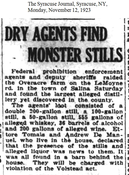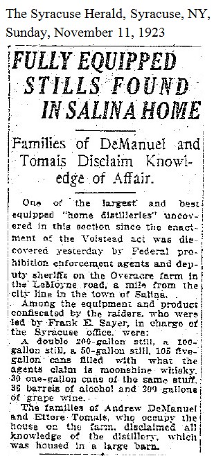 [1923-11-11] - "Fully Equipped Stills Found in Salina Home," The Syracuse Herald, Syracuse, NY, Sunday, November 11, 1923.