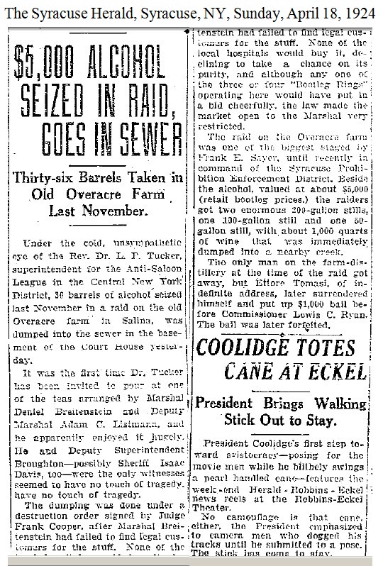 [1924-04-18] - "$5,000 Alcohol Seized in Raid Goes in Sewer," The Syracuse Herald, Syracuse, NY, Sunday, April 18, 1924.