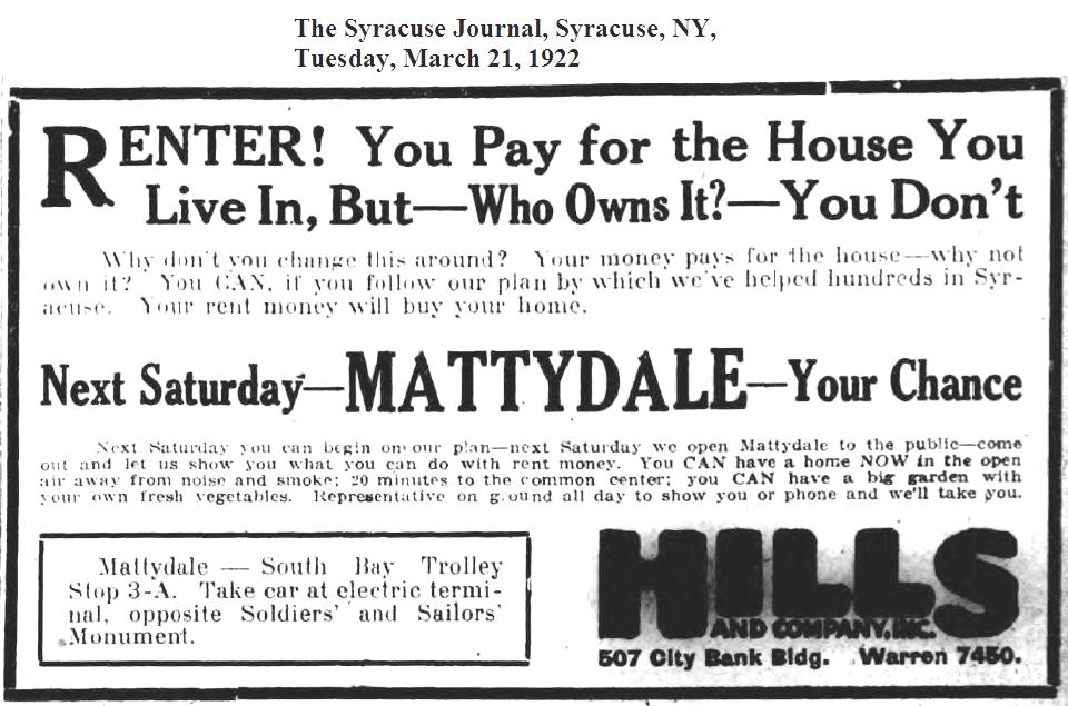 Mattydale Tract - 1927